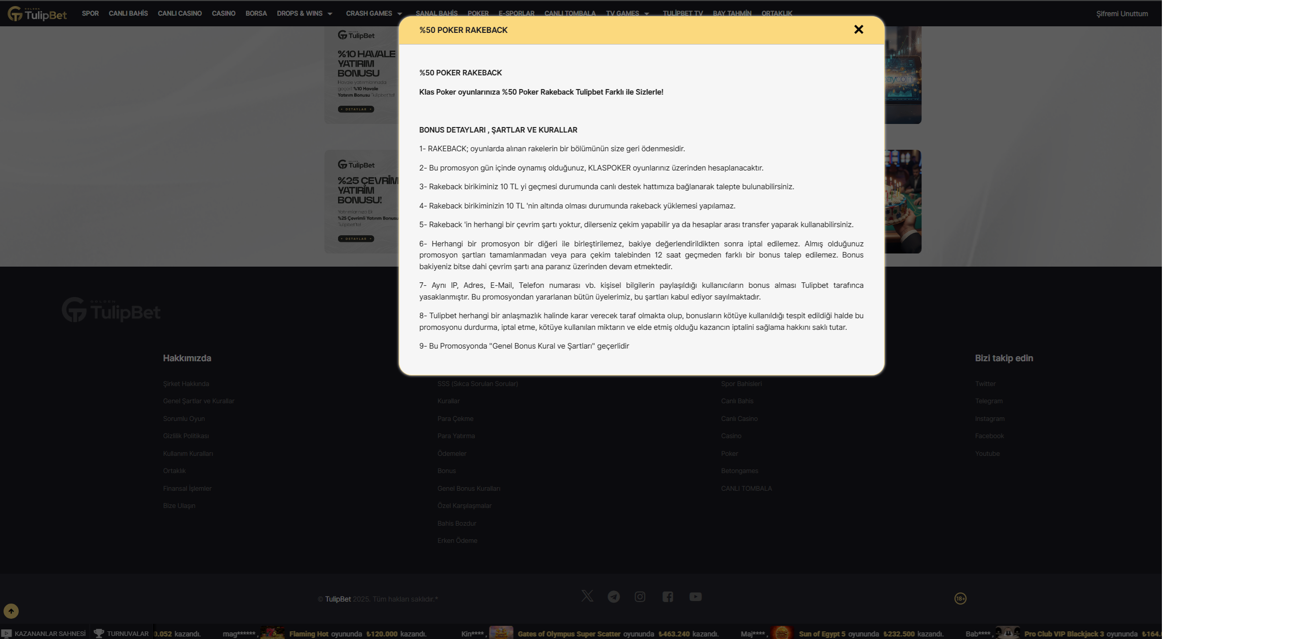 Tulipbet %50 Poker Rakeback Bonusu Tulipbet canlı casino olarak bahis severlerin istek ve kullanım kolaylığına göre hazırlamış olduğumuz internet…
